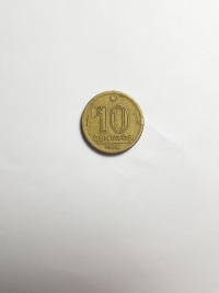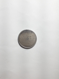 Nom anverso, mapa topográfico do Brasil. Bronze-Alumínio 8gr 25mm. Foram cunhadas 20.394.000 unidades.