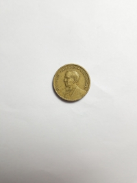 No anverso, retrato do Padre José de Anchieta, de perfil, onde se insere a inscrição ANCHIETA na vertical. Bronze-Alumínio 8gr 24,5mm. Foram produzidas 4.157.000 unidades.
