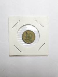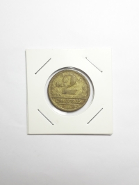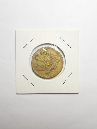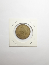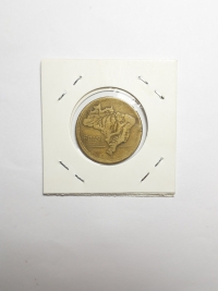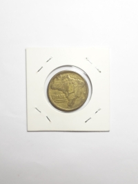 No anverso, mapa topográfico do Brasil. Bronze-Alumínio 8gr 25mm. Foram cunhadas 20.394.000 unidades.