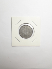 1ª família do real. Aço Inoxidável 4,3gr 24mm. Foram produzidas 215.000.000 unidades.