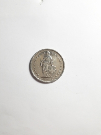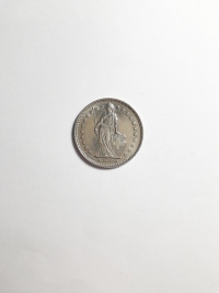No anverso, Helvetia, a personificação feminina da Suíça, usando uma toga. Cercada por 22 estrelas que representam 22 cantões em que a Confederação então consistia. CuproNíquel 8,8gr 27,4mm. Foram produzidas 31.588.000 unidades.
