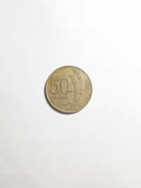 No anverso, um cavalo, um dos símbolos do brasão nacional do Uruguai, e simboliza a liberdade. Bronze-Alumínio 3,0gr 19mm. Foram produzidas 50.000.000 unidades.