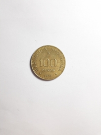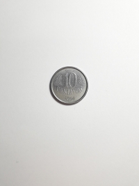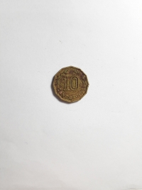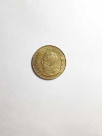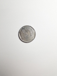 No anverso, retrato do General José de San Martin. Bronze-Alumínio 8,1gr 27,2mm. Foram produzidas 43.389.383 unidades.