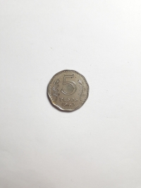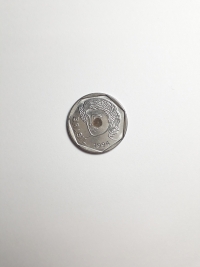 No anverso, Dalalh, cafeteira árabe tradicional. CuproNíquel 6,5gr 24mm.