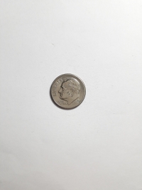 No anverso, retrato de Frnaklin Roosevelt, o 32º presidente dos Estados Unidos de 1933 até sua morte em 1945. Cobre com revestimento de CuproNíquel 2,27gr 17,91mm. Foram produzidas 1.818.700.000 unidades.