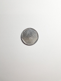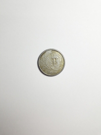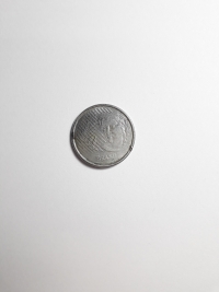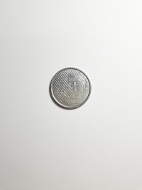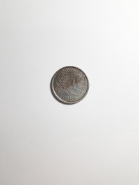 1ª família do Real. No anverso, efígie da República. Aço Inoxidável 4,8gr 23,5mm. Foram produzidas 140.000.000 unidades.