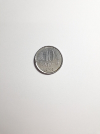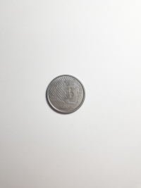 No anverso, brasão de armas do Uruguai. CuproNíquel 5,25gr 24,5mm. Foram produzidas 20.000.000 unidades.