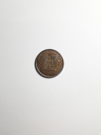 1ª família do real. No anverso, efígie da República. Aço Inoxidável 3,3gr 21mm. Foram produzidas 240.000.000 unidades.