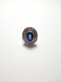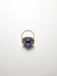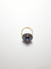 Anel de Ouro com pedra de Safira azul. Material: Ouro 18K; Peso: 4,1g; Aro 21.